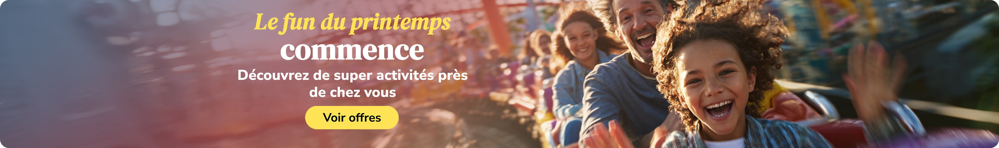 Que vous souhaitiez respirer l’air frais lors d’une aventure en plein air, passer une journée détente entre amis ou tester une nouvelle activité en ville, Groupon vous aide à économiser tout en rendant chaque instant spécial. Ce printemps, que le plaisir continue avec Groupon!